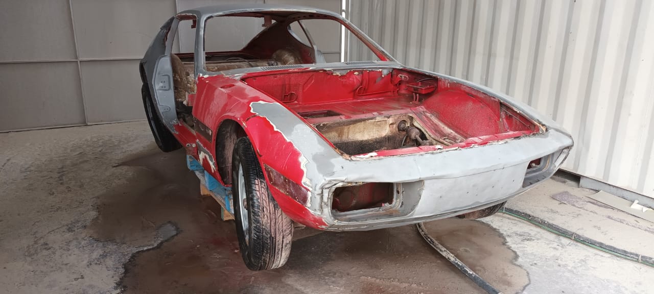 This is a picture of an older model Porsche car body that has been partially wet abrasive blasted using HoldTight 102 to remove salts and contaminants and prevent flash rusting.  It was blasted by our distributor in Chile.  As you can see, he has not blasted the engine cavity as it is still red as…